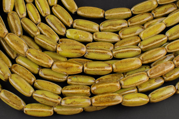8x20mm Ceramic Smooth Tubular -15 inches per strand- Olive