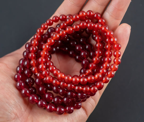 Blood Carnelian Bracelet Round Size 6mm and 8mm Handmade In USA Natural Gemstone Crystal Bracelets Handmade Jewelry - approx. 7"