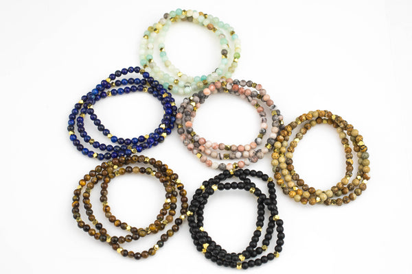 Bracelet-Natural Gemstone Triple Wrap Bracelet On Stretchy String- Crystal- 20 Inches Long- Wraps 3 times - Can double as a choker necklace