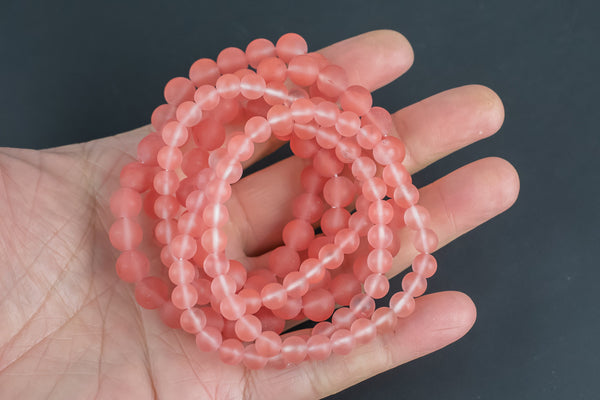 Cherry Quartz Matte Round Size 6mm and 8mm- Handmade In USA- approx. 7" Bracelet Crystal Bracelet