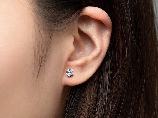 Classic Diamond Earrings • Round Diamond Solitaire Stud in White Gold Sterling Silver • Minimalist Earrings • Sterling Silver • Wholesale
