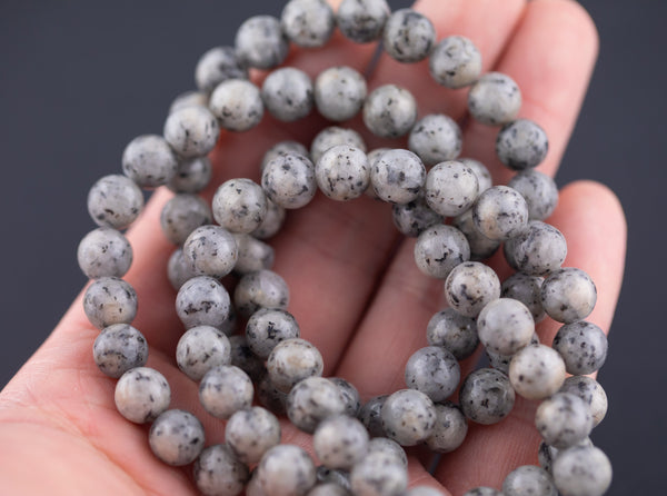 Gray Spotted Cheetah Jasper Bracelet Round Size 6mm and 8mm Handmade In USA Natural Gemstone Crystal Bracelets Handmade Jewelry - approx. 7"