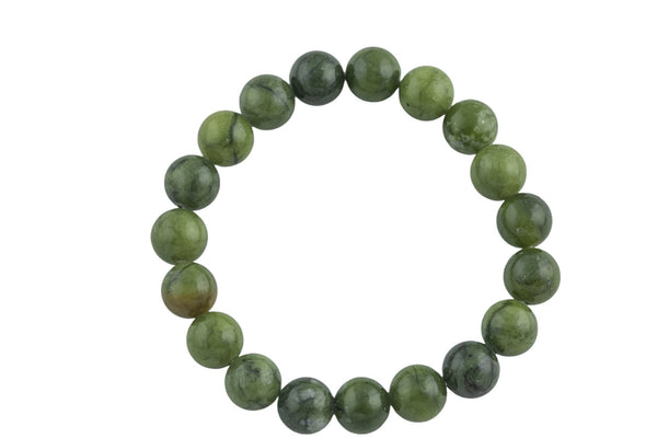 Green Jade Smooth Round Size 10mm and 12mm- Handmade In USA- approx. 7-7.5" Bracelet Crystal Bracelet- LGS