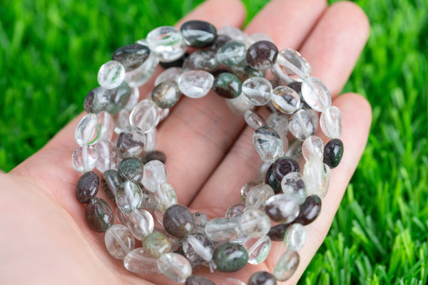 Green Phantom Quartz Stretchy String Oval Bracelet Natural Crystal Gemstone Bracelets - Gemstone Nugget Bracelets Handmade Jewelry Bracelet