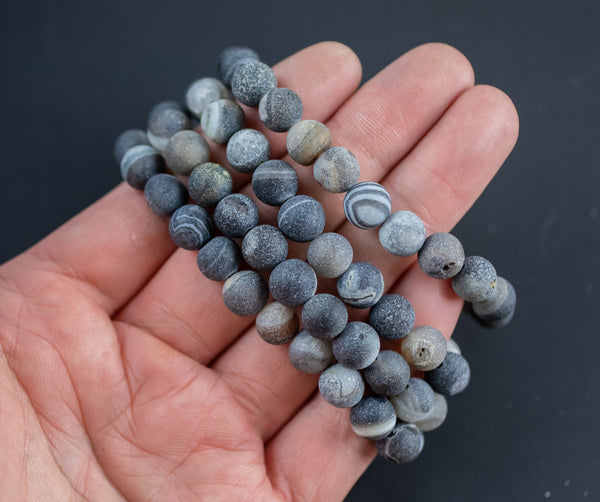 Matte Black Agate Bracelet Round Size 6mm and 8mm Handmade In USA Natural Gemstone Crystal Bracelets - Handmade Jewelry - approx. 7"