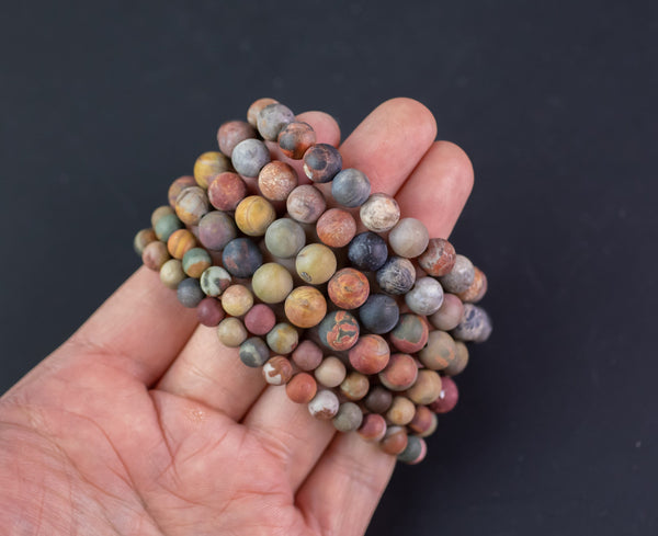 Matte Fossil Coral Bracelet Round Size 6mm and 8mm Handmade In USA Natural Gemstone Crystal Bracelets Handmade Jewelry - approx. 7"