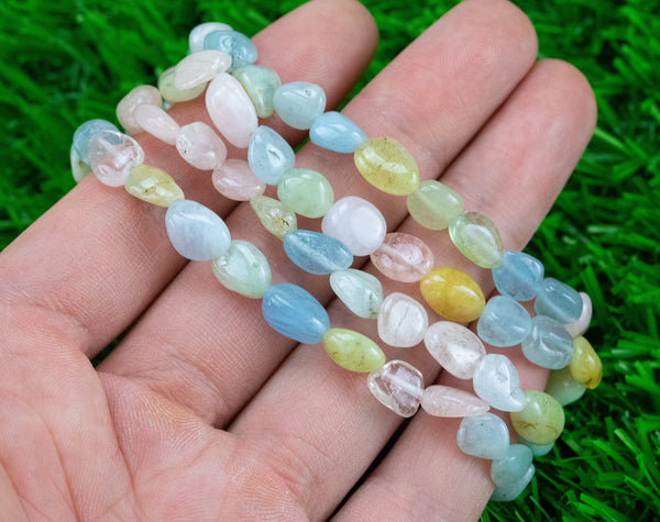 Morganite with Beryl Stretchy String Oval Bracelet Natural Crystal Gemstone Bracelets - Gemstone Nugget Bracelets Handmade Jewelry Bracelet