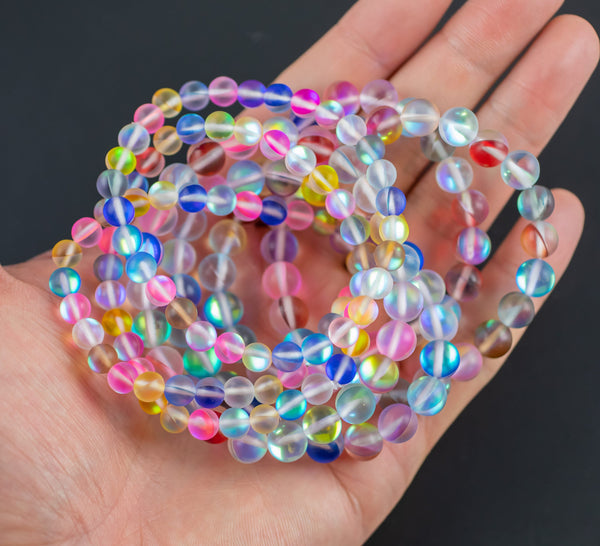 Multicolor Mix Mystic Aura Quartz Bracelet Round Size 6mm and 8mm Handmade In USA Natural Gemstone Bracelets - Handmade Jewelry - approx. 7"