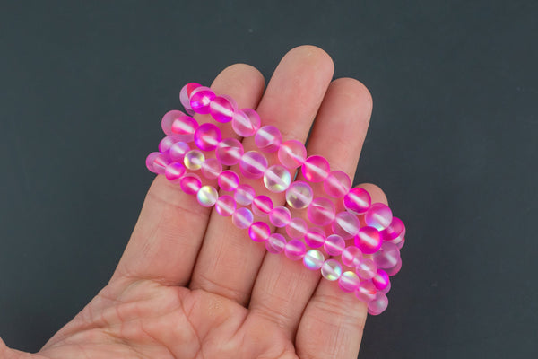 Mystic Aura Quartz Bracelet Matte Round Size 6mm and 8mm - Handmade In USA - Gemstone Crystal Bracelets - Handmade Jewelry - approx. 7"