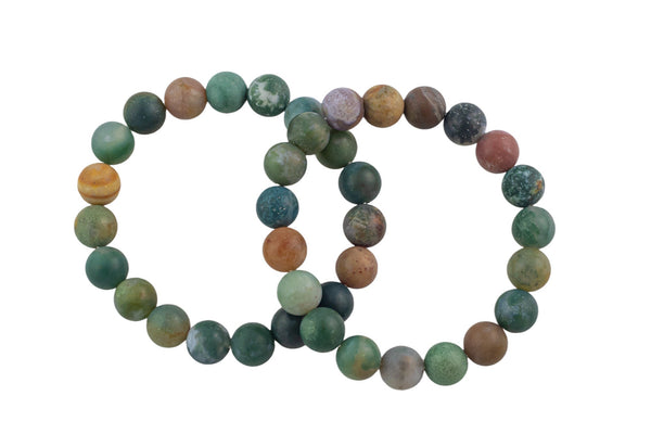 Natural Indian Agate Bracelet Matte Round Size 6mm and 8mm- Handmade In USA- approx. 7" Bracelet Crystal Bracelet