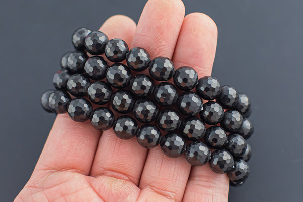 Natural Jet Bracelet Facted Round Size 10mm- Handmade In USA- approx. 7-7.5" Bracelet Crystal Bracelet- LGS