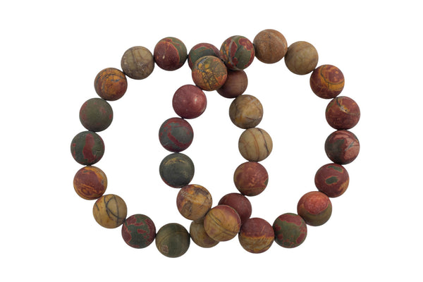 Natural Matte Picasso Jasper Bracelet Smooth Round Size 6mm and 8mm- Handmade In USA- approx. 7" Bracelet Crystal Bracelet