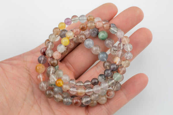 Natural Multi Color Rutilated Quartz Bracelet Smooth Round Size 6mm and 8mm- Handmade In USA- approx. 7" Bracelet Crystal Bracelet