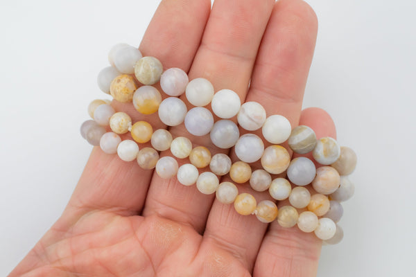 Natural Opalized Pale Bamboo Agate Bracelet Smooth Round Size 6mm and 8mm- Handmade In USA- approx. 7" Bracelet Crystal Bracelet