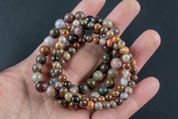 Natural Petrified Wood Round Size 6mm and 8mm- Handmade In USA- approx. 7" Bracelet Crystal Bracelet