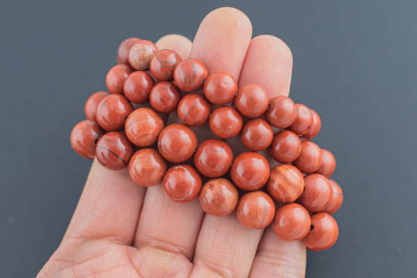 Natural Red Jasper Round Size 10mm and 12mm- Handmade In USA- approx. 7-7.5" Bracelet Crystal Bracelet- LGS