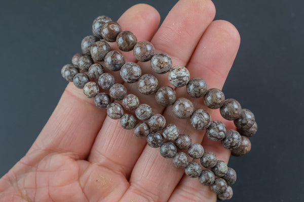 Natural Red Snow Jasper Round Size 6mm and 8mm- Handmade In USA- Precharged- 7.5" Length Bracelet Crystal Bracelet