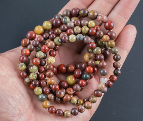 Red Jasper Bracelet Round Size 6mm and 8mm- Fossil Beads Handmade In USA Natural Gemstone Bracelets - Handmade Jewelry - approx. 7"