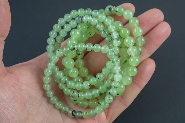 Prehnite Garnet Green Garnet Bracelet Round Size 6mm and 8mm - Handmade In USA - Natural Gemstone Bracelets - Handmade Jewelry - approx. 7"