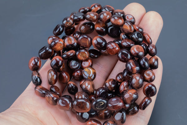 Red Tiger Eye Tiger's Eye Gemstone Bracelet Bracelet Stretchy String Oval Bracelet Natural Gemstone Bracelets - Gemstone Nugget Bracelets