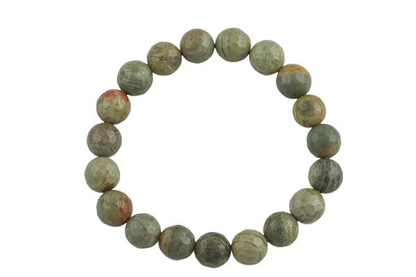 Silver Leaf Jasper Faceted Round Size 10mm and 12mm- Handmade In USA- approx. 7-7.5" Bracelet Crystal Bracelet- LGS