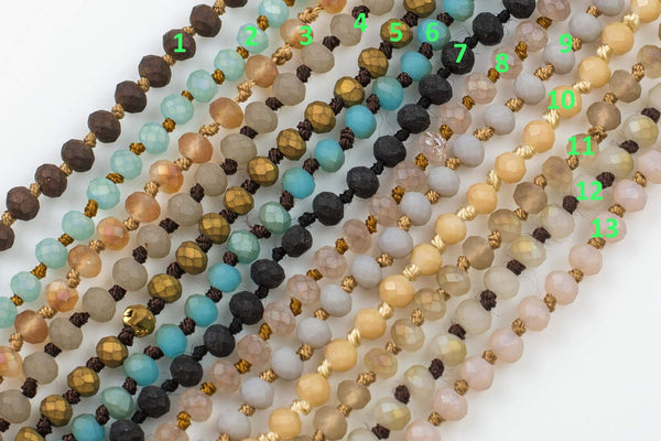 Skinny- Knotted crystal necklaces. Extra Long Hand-Knotted Small Crystal- 35 inches long! 4mm