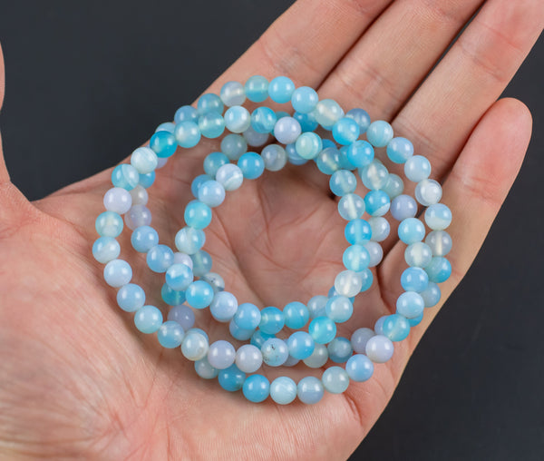 Sky Blue Agate Bracelet Round Size 6mm and 8mm Handmade In USA - Natural Gemstone Crystal Bracelets Handmade Jewelry - approx. 7"