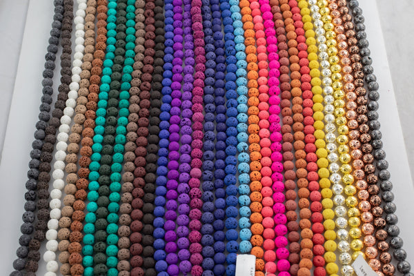 8mm Lava Rock Beads Multicolor Natural Round Loose - Color Colored Lava Beads - Full 15.5" Strands - Wholesale Pricing