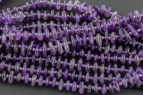 Natural Amethyst Smooth Freeform Roundel Chip Beads 15.5" Strand