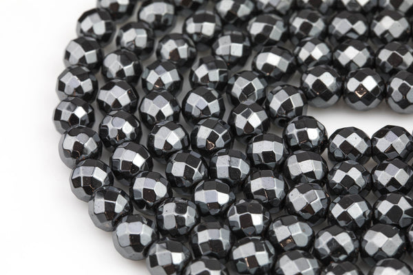 NATURAL Gray Hematite Faceted Round Grade AAA 3mm, 4mm, 6mm, 8mm, 10mm- Full 15.5 Inch Strand