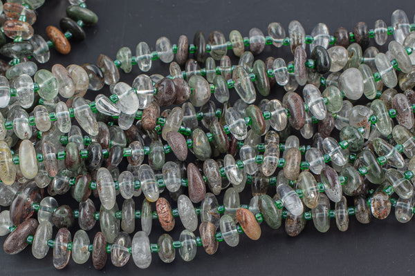 Natural Phantom Quartz Smooth Freeform Roundel Chip Beads 15.5" Strand