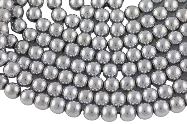Platinum Silver White Gold Plated HEMATITE Beads. Round Smooth. 2mm, 3mm,4mm, 6mm, 8mm, 10mm or 12mm. Full Strand 16".
