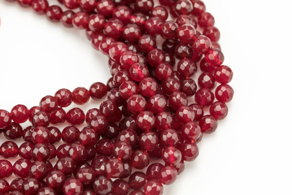 True Maroon Red - JADE Faceted Round -Full Strand 15.5 inch Strand, 4mm, 6mm, 8mm, 12mm, or 14mm Beads-Full Strand 15.5 inch Strand