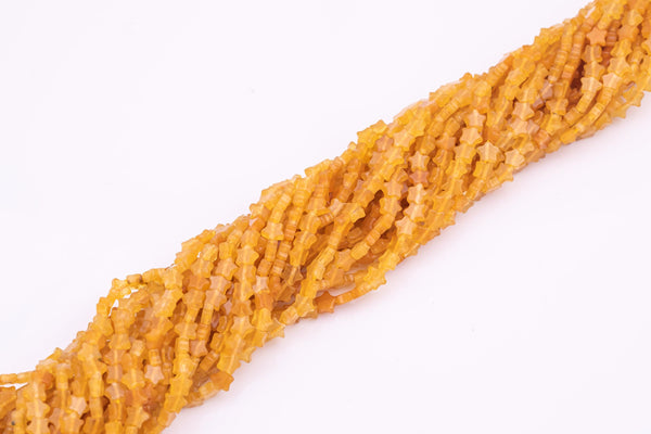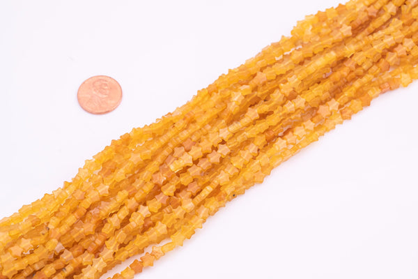 Amber Jade Beads 6mm Star Shaped Real Gemstone 15" Strand Smooth Gemstone Beads