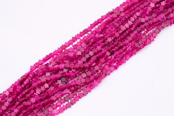 Fuchsia Hot Pink Jade 6mm Star Shaped Real Gemstone 15" Strand Smooth Gemstone Beads