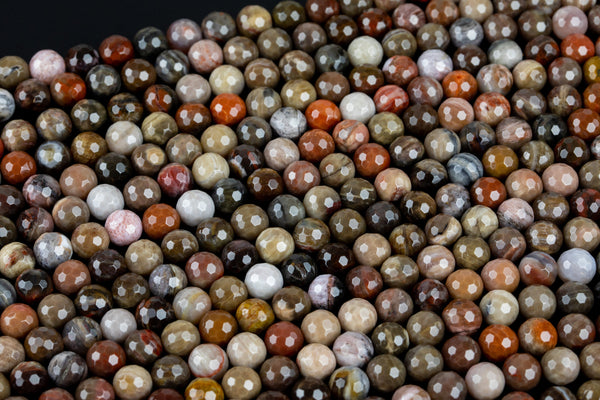 Natural AAA Petrified Wood Faceted Round High Quality 6mm 8mm 10mm 12mm Full Strand AA Quality AAA Quality Gemstone Beads