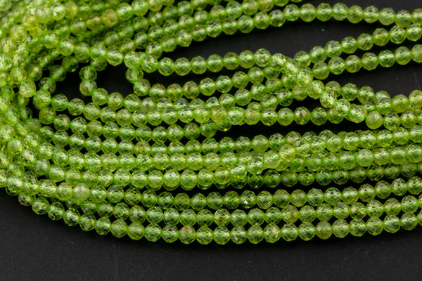 Natural Beautiful TINY 3mm SHARP CUT Peridot semi-round / roundel Gemstone Beads