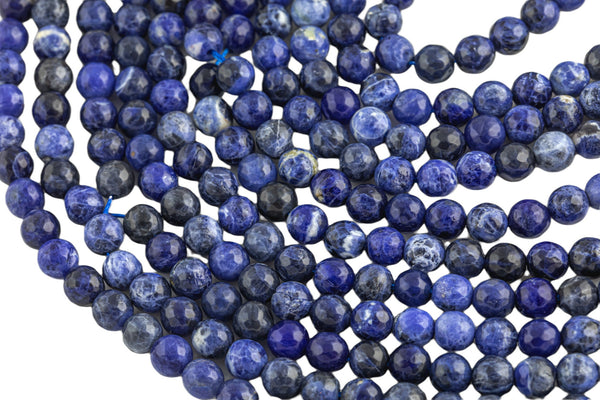 Natural Dark Blue Sodalite, High Quality in Faceted Round, -Full Strand 15.5 inch Strand, 4mm, 6mm, 8mm, 12mm, or 14mm Beads AAA Quality