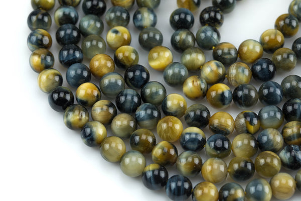 Natural Gold Blue Tiger's Eye Tiger Eye Round Beads High Quality, Full Strand 6mm, 8mm, 10mm, or 14mm Beads Smooth Gemstone Beads