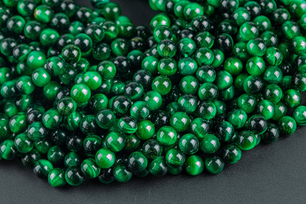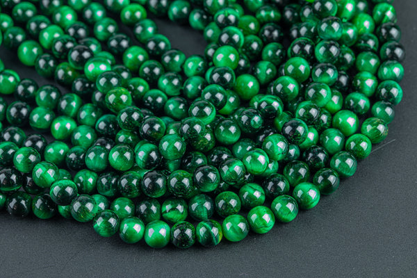 Natural GRADE A TOP QUALITY Tiger's Eye Tiger eye Tiger-Eye - 6mm 8mm 10mm - Round - Full 15.5" Strands- Emerald Green Smooth