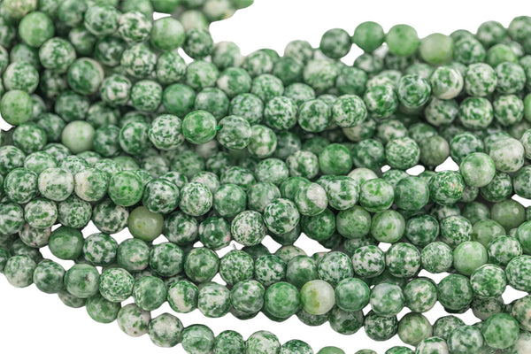 Natural Green Dalmation Jasper, High Quality in Faceted Round, 4mm, 6mm, 8mm, 10mm, 12mm- Full 15.5 Inch Strand Gemstone Beads