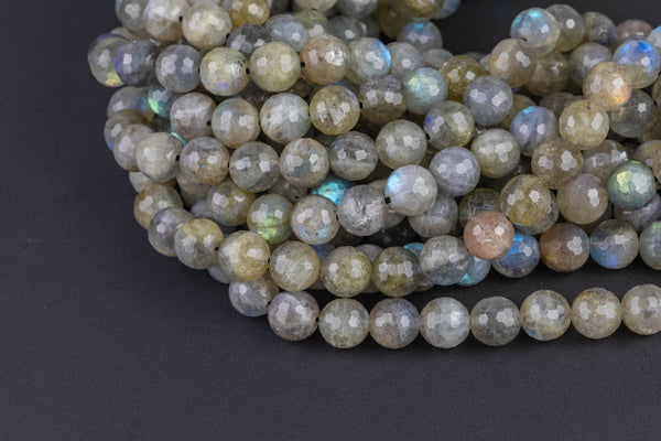 Natural Labradorite, High Quality in Faceted Round, 4mm, 6mm, 8mm, 10mm- In Full 15.5 Inch Strands AAA Quality Gemstone Beads