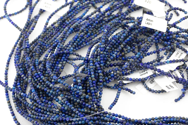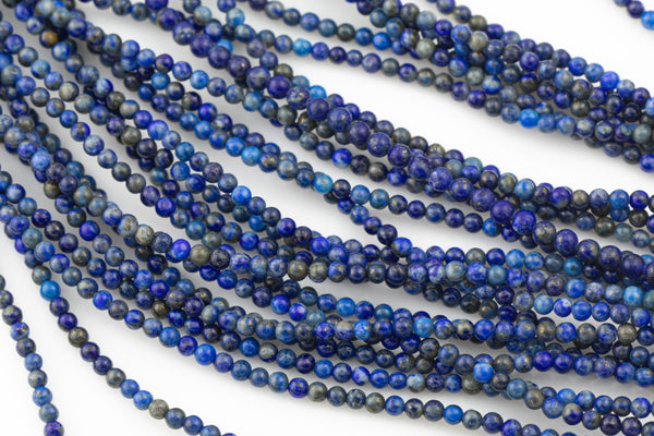 Natural Lapis Lazuli Beads Small 2.5mm 3mm 3.5mm 4mm Round Smooth Small Sizes - Full Strands Gemstone Beads High Quality Untreated No Dye