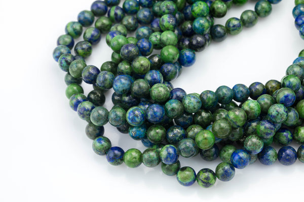 Natural Malachite Azurite Beads Grade AAA Round 4mm, 6mm, 8mm, 10mm, 12mm, 14mm- Full 15.5 Inch strand AAA Quality Smooth Gemstone Beads