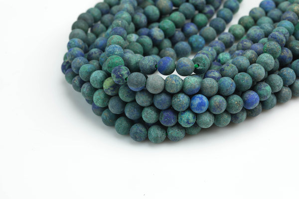 Natural Matte Malachite Azurite Beads Grade AAA 4mm, 6mm, 8mm, 10mm, 12mm, 14mm- Full 15.5 Inch Strand AAA Quality Gemstone Beads