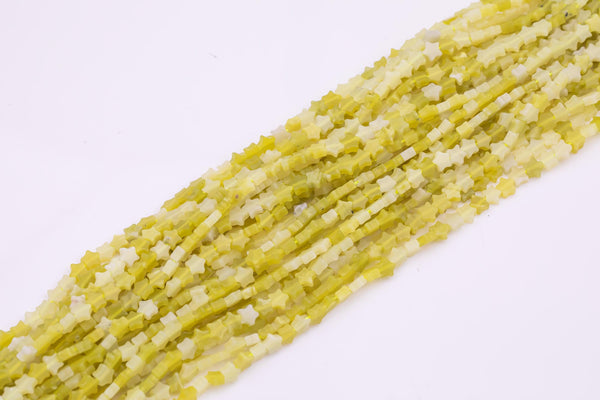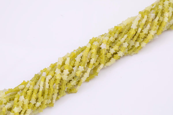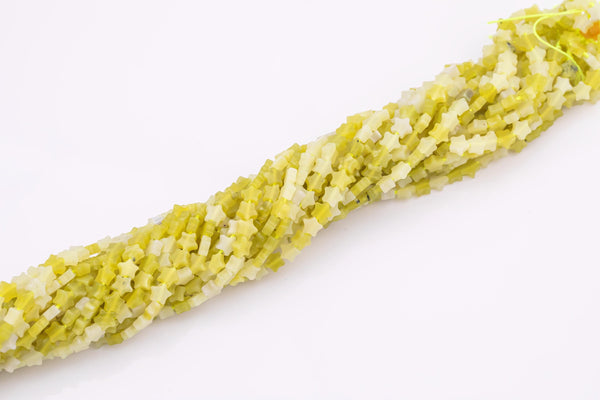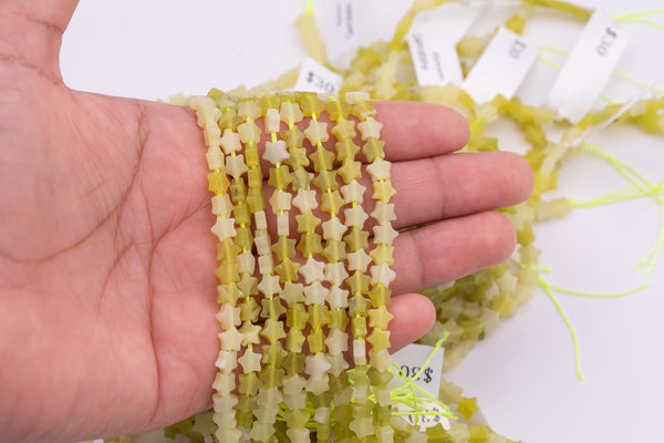 Natural Olive Jade Beads 6mm Star Shaped Real Gemstone 15" Strand Smooth Gemstone Beads