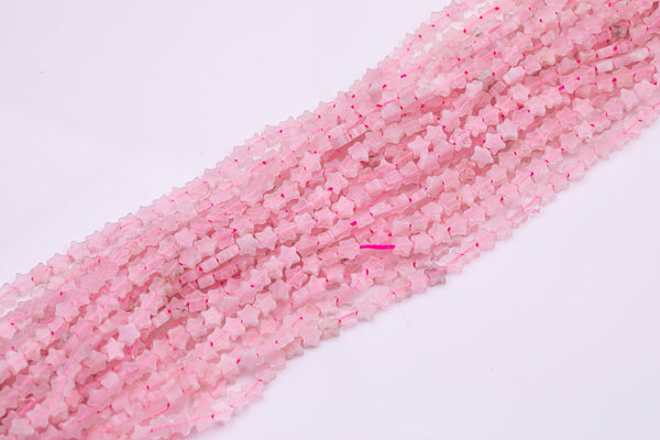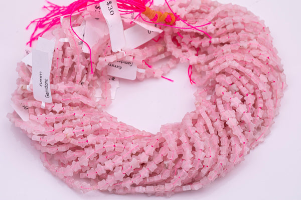 Natural Rose Quartz Beads 6mm Star Shaped Real Gemstone 15" Strand Smooth Gemstone Beads