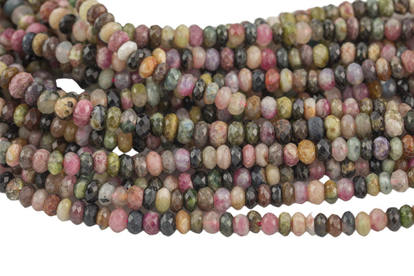 Natural Watermelon Tourmaline- Sharp Diamond Cut- High Facets , Faceted Roundel- 6 mm 8mm- Full 15.5 Inch Strand AAA Quality Gemstone Beads