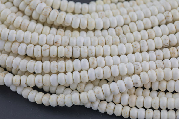 Natural White Turquiose - High Quality in Roundel, 6mm, 8mm- Full 15.5 Inch Strand-15.5 inch Strand Smooth Gemstone Beads