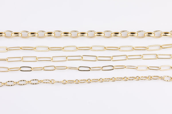14k Gold Plated Paperclip Chains - Tarnish Resistant Popular Paperclip Figaro Satellite chain - Sold by the yard - Beautiful Gold Plating